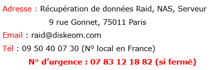 Le diagnostic technique et le devis, en vu d'une récupération de données, sont totalement gratuits, quelque soit la complexité du Raid.